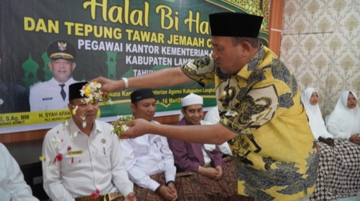 Langkat, POL | Plt Bupati Langkat menghadiri Halal Bi Halal dirangkaikan dengan acara Tepung Tawar Calon Jemaah Haji (CJH) Pegawai Kantor Kemenag Kabupaten Langkat, di Aula Kantor kemenag Langkat, Selasa (16/5/2023).
