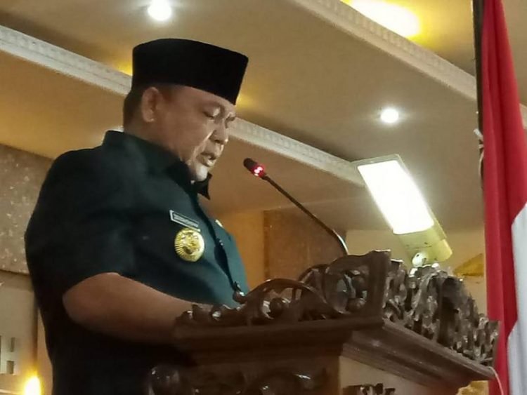 Stabat, POL | Bupati Langkat Terbit Rencana PA bersama wakil Bupati Langkat H.Syah Afandin memberikan jawaban atas pandangan umum, yang disampaikan Fraksi DPRD Langkat dalam membahas rancangan P APBD Langkat TA 2020, pada sidang paripurna di Gedung DPRD Langkat, Stabat, Selasa (1/9/2020).
