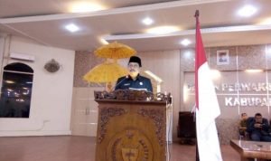 Langkat, POL | Bupati Langkat Terbit Rencana PA melalui Sekdakab Langkat Dr.H Indra Salahudin, memberikan jawaban atas pandangan umum dari 8 farksi DRPD Langkat, terhadap Ranperda Laporan Pertanggung Jawaban (LPJ) APBD Kabupaten Langkat Tahun Anggaran 2019, pada rapat paripurna di gedung DPRD Langkat, Selasa (21/7/2020).