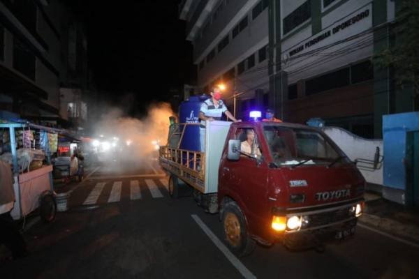 Tim Gugus Tugas Covid-19 Bersama FMT Semprot Disinfektan di Inti Kota Kisaran