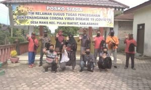Asahan, POL | Tim RelawanGugus Percepatan Penanganan Pencegahan Covid-19 Desa Manis, Kecamatan Pulau Rakyat, Kabupaten Asahan, Jum’at (17/4/2020) membagikan masker kepada warga sebanyak 4.000 masker yang diberikan dari rumah ke rumah khususnya untuk warga desa setempat.