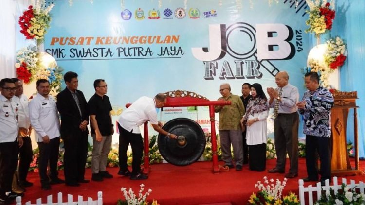 Stabat, POL | Dalam upaya menurunkan angka pengangguran terbuka, Pj Bupati Langkat, H. M. Faisal Hasrimy, AP., M.AP., tingkatkan Kolaborasi dan sinergi dengan dunia usaha melalui Job Fair SMK 2024. Pj. Bupati membuka secara resmi kegiatan tersebut di SMK Swasta Putra Jaya Stabat, pada Rabu (25/09/2024).