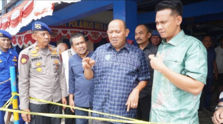 Langkat, POL | Plt Bupati Langkat H.Syah Afandin SH meninjau Dermaga Umum Tempat Pelelangan Ikan (TPI) Pajak Ikan Lama depan Mako Sat Polairud Res Langkat, di Jalan Babalan Kelurahan Berandan Timur Kecamatan Babalan, Kamis (3/8/2023).