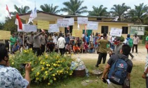 Padanglawas, POL | Sampaikan aspirasi yang isinya menuntut hak normatif, ratusan massa buruh tergabung di Pimpinan Unit Kerja Serikat Pekerja Aneka Industri Federasi Serikat Pekerja Metal Indonesia (PUK SPAI FSPMI) menggelar aksi unjukrasa di depan kantor Manajemen PT. Permata Hijau Sawit (PHS) kebun Papaso, Rabu (21/10/2020).