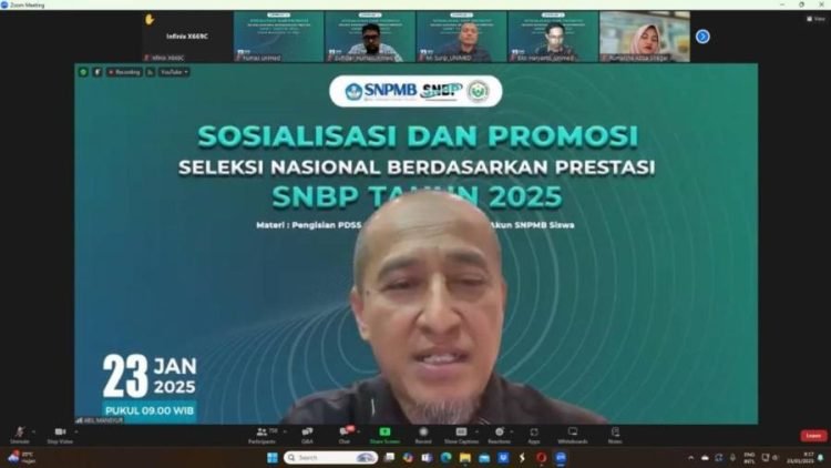 Medan, POL | Universitas Negeri Medan melaksanakan Sosialisasi dan Promosi SNPMB Jalur SNBP dan SNBT 2025 bagi para Kepala Sekolah, Guru BK, dan para siswa SMA/SMK/MA sederajat Se-Sumatera Utara. Kegiatan dilaksanakan secara daring zoom meeting dan live streaming, Senin.
