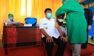 Pada kesempatan kali ini Wakil Bupati Samosir Ir. Juang Sinaga menerima penyuntikan pertama vaksinasi Covid-19 di Kabupaten Samosir dilanjutkan dengan unsur Forkopimda dan Tokoh Masyarakat.