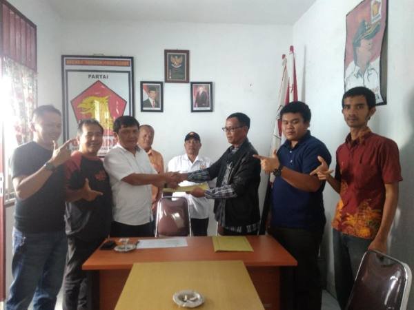 Rombongan simpatisan Vandico Gultom diterima langsung ketua tim pendaftaran DPC Partai Gerindra Kabupaten Samosir, Saur Tua Silalahi bersama anggotanya.