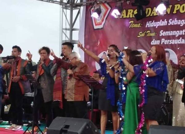 Amatan di lokasi, tampak Vandico Gultom bersama ayahnya, Ober Gultom dan artis ibukota yang ia bawa diberi kesempatan bernyanyi bersama di atas panggung.