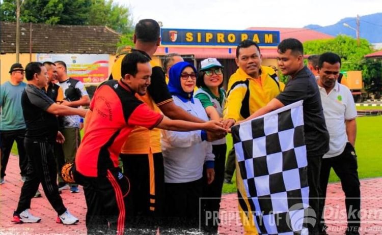 Labuhanbatu, POL | Wakil Bupati (Wabup) kabupaten Labuhanbatu Hj. Ellya Rosa Siregar, S.Pd, MM., menghadiri Halal Bihalal dan olahraga bersama TNI – POLRI, Forkopimda Labuhanbatu dan Labuhanbatu Utara di Halaman Mapolres Labuhanbatu, Jalan MH Thamrin Rantauprapat, kecamatan Rantau Utara kabupaten Labuhanbatu, Selasa (02/05/2023).