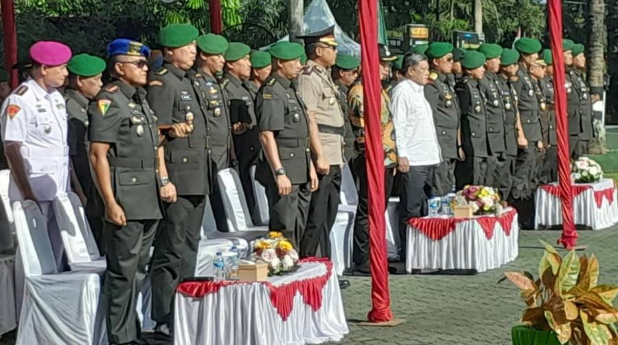 Deli Serdang, POL | Sebagai wujud Soliditas dan Sinergi TNI-Polri, Kapolresta Deli Serdang Kombes Pol Irsan Sinuhaji, SIK, MH yang diwakili oleh Wakapolresta Deli Serdang AKBP Agus Sugiyarso, SIK, MH menghadiri Upacara Serah Terima Jabatan Komandan Brigif 7/Rimba Raya dari Kolonel Inf Gede Setiawan kepada Letkol Inf Nur Wicahyanto, SE yang di laksanakan di Mako Brigif 7/Rimba Raya di Jalan Bandar Kwala Kecamatan Galang Kabupaten Deli Serdang, Sumut, Rabu (25/01/2023)