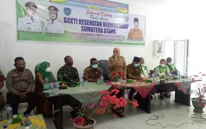 Labuhanbatu, POL | Wakil Bupati Labuhanbatu Hj.Ellya Rosa Siregar,SPd,MM  membuka kegiatan sunat massal, operasi bibir sumbing dan pelayanan kesehatan gratis dari Satgas Bakti Kesehatan Bermartabat (BKB) Provinsi Sumatera Utara, di Aula Kantor Camat Bilah Hilir, Jalan Pembangunan, Negeri Lama Seberang, Kecamatan Bilah Hilir, Selasa (02/11/2021).