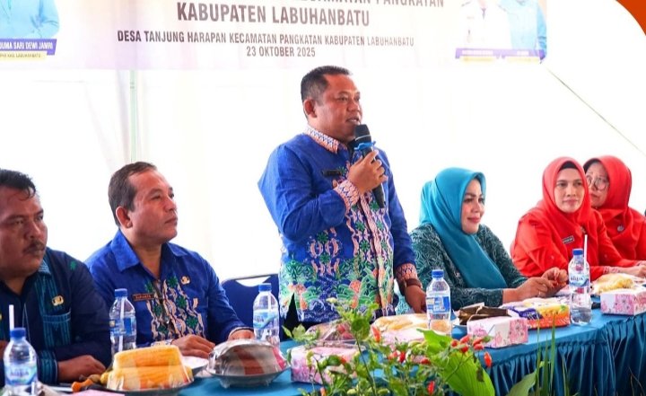 Labuhanbatu, POL | Wakil Bupati Labuhanbatu H. Jamri ST, menghadiri Kegiatan Evaluasi Desa/Kelurahan Pelaksanaan Lomba Pola Asuh Anak dan Remaja (PAAR) Tahun 2025 Oleh Tim PKK Provinsi Sumatera Utara (Sumut), di Aula Kantor Kepala Desa Tanjung Harapan, Kecamatan Pangkatan, Kamis (23/10/2025).