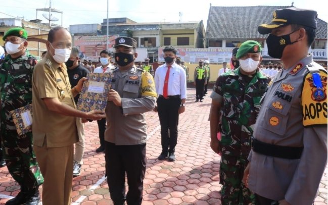 Kapolres Samosir AKBP Josua Tampubolon SH MH menyampaikan apresiasi kepada seluruh personil atas dedikasi dalam akselerasi percepatan capaian vaksinasi Covid-19 serta himbauan penegakan protokol kesehatan di Kabupaten Samosir.