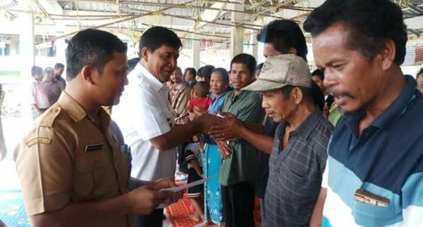 Di tempat selanjutnya Wakil Bupati juga menyalurkan bntuan sosial tali asih kepada korban bencana sebagai pengganti sipirnitondi di Aula Kantor Bupati Kabupaten Samosir kepada 7 Kepala Keluarga yang berada di Kecamatan Pangururan dan Kecamatan Nainggolan.