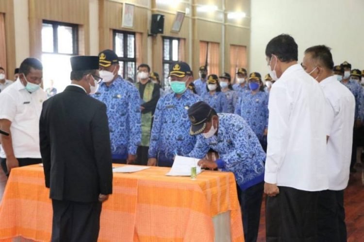 Simalungun, POL | Bupati Simalungun Radiapoh Hasiholan Sinaga, yang diwakilkan Wakil Bupati Zonny Waldi, melantik 55 Kepala Sekolah SMP Negeri di lingkungan Pemerintahan Kabupaten Simalungun, Rabu (23/2/22) di Balai Harungguan Djabanten Damanik.
