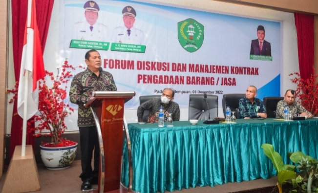 Padangsidempuan, POL | Wali Kota Padangsidempuan Irsan Efendi Nasution Buka Forum Diskusi dan Manajemen Kontrak Barang dan Jasa di Emerald Hall Hotel Mega Permata, Kamis (8/12/2022).