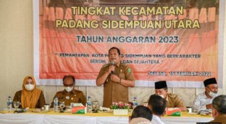 Padangsidempuan, POL | Wali Kota Padang Sidempuan Irsan Efendi Nasution membuka Musyawarah Perencanaan Pembangunan (Musrenbang) Tahun Anggaran 2023 Tingkat Kecamatan Padang Sidempuan Utara (15/2), di Aula Kantor Camat tersebut.