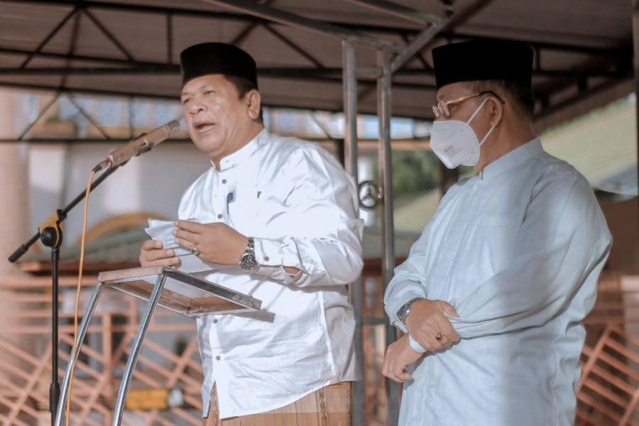 Di hadapan para jamaah sholat Id, Wali Kota Padangsidimpuan Irsan Efendi Nasution menuturkan kepada jemaah Shalat Idul Adha agar mematuhi protokol kesehatan.