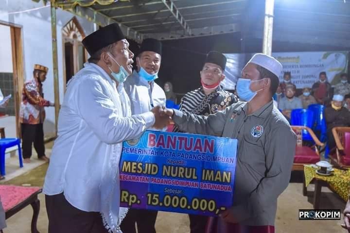 Selesai memberi arahan, disaksikan para jamaah, dan tim safari muharram, wali kota menyerahkan bantuan untuk pembangunan Masjid Rp15.000.000,- dari APBD pada bagian kesejahteraan rakyat (Kesra) Sekdako Padangsidimpuan.