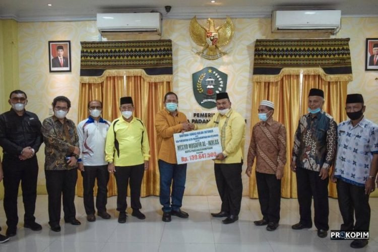 Padangsidimpuan, POL | Wali Kota Padangsidimpuan Irsan Efendi Nasution mewakili seluruh jajaran Pemerintah Kota Padangsidimpuan menyerahkan bantuan zakat, infaq, sodaqoh (ZIS) kepada panitia kecil pembangunan Masjid Musafir Al – Ikhlas (5/11/2021) Padangsidimpuan.