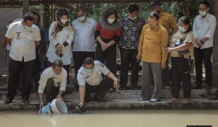 Padangsidimpuan, POL | Wali Kota Padangsidimpuan Irsan Efendi Nasution, SH tabur bibit ikan lele di Kelurahan Batunadua Jae, Sihoring-koring Kota Padangsidimpuan, Rabu (15/09/2021).
