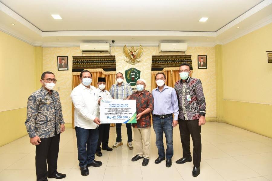 Wali Kota Padangsidimpuan Irsan Efendi Nasution memberikan apresiasi pada BPJS Ketenagakerjaan BPJamsostek yang telah membayarkan santunan kepada pegawai Kantor Inspektorat yang meninggal dunia.