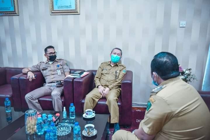 Padangsidimpuan, POL | Wali Kota Padangsidimpuan Irsan Efendi NasutionSH, menerima kunjungan Kepala Badan (Kaban) Kesatuan Bangsa dan Politik (Kesbangpol) Provinsi Sumatera Utara Safruddin di ruang kerjanya, Selassa (13/7/2021).