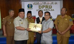 Sibolga, POL | Wali Kota Sibolga Drs. H.M.Syarfi Hutauruk, MM, menyerahkan 6 (enam) Rancangan Peraturan Daerah (Ranperda) Tahun 2020 untuk dijadikan Peraturan Daerah (Perda), kepada DPRD Kota Sibolga, pada Rapat Paripurna DPRD Kota Sibolga di Ruang Rapat Utama Kantor DPRD Kota Sibolga, pada Selasa (18/02/20) pagi kemaren