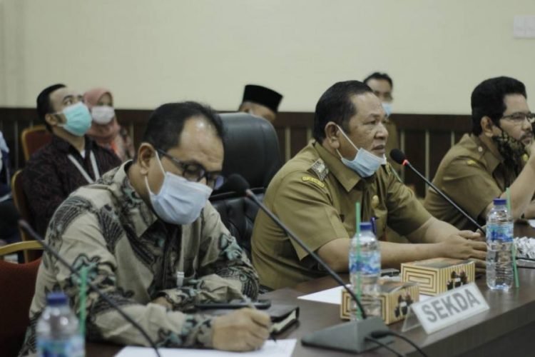 Padangsidimpuan, POL | Walikota Padangsidimpuan Irsan Efendi nasution SH ikuti Reses Perseorangan Anggota DPR RI, Sihar P.H. Sitorus secara virtual di Aula Kantor Walikota, Selasa (15 /12/2020)