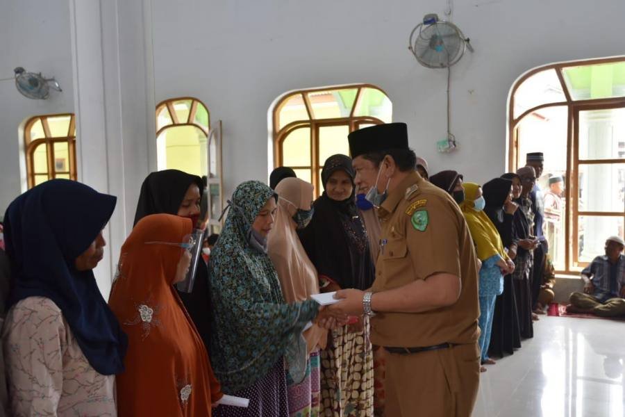 Padangsidimpuan, POL | Walikota Padangsidimpuan Irsan Efendi Nasution SH bagikan santunan kepada 26 anak yatim piatu dan 85 fakir miskin di Masjid Istiqomah kelurahan kantin Padangsidimpuan, Selasa (4/5/2021).