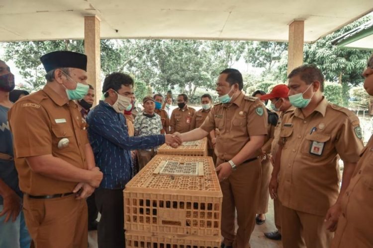 Pasangsidimpuan, POL | Walikota Padangsidimpuan Irsan Efendi Nasution SH didampingi perwakilan Kadis Ketahanan Pangan Sumut, Kadis Pertanian Padangsidimpuan Parhimpunan Siregar dan Camat serahkan ternak Ayam Buras dan Itik Petelur untuk enam kelompok tani sebanyak 1200 ekor, Senin (14/12/2020).
