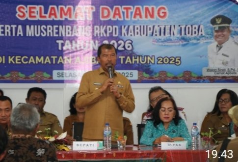 Toba, POL | Dalam agenda Rencana Pembangunan (Musrenbang) Rencana Kerja Pembangunan (RKPD) Kabupaten Toba Tahun 2026 di Kecamatan Ajibata, yang dilaksanakan di Aula Kantor Camat Ajibata pada Selasa (18/3/2025) sore, Camat Ajibata, Wajon Sirait menyampaikan terdapat 47 usulan dari Musrenbang desa yang dilaksanakan sebelumnya.