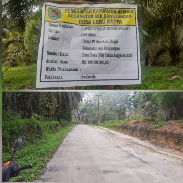 Asahan, POL | Warga di Dusun IV Lobu Rappa dan Dusun V Salippopot,Desa Lobu Rappa, Kabupaten Asahan,saat ini sudah dapat memanfaatkan ruas jalan aspal dengan lapisan penetrasi (lapen).Ruas jalan desa yang telah diaspal lapen berada di perantaraan Dusun IV dengan Dusun V desa setempat.