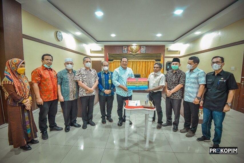 Padangsidempuan, POL | Masyarakat Desa Simatohir Kecamatan Padang Sidempuan Angkola Julu mengibahkan tanah pada Pemerintah Kota Padang Sidempuan, Kamis (31/3/2022) di Aula Kantor Wali Kota.