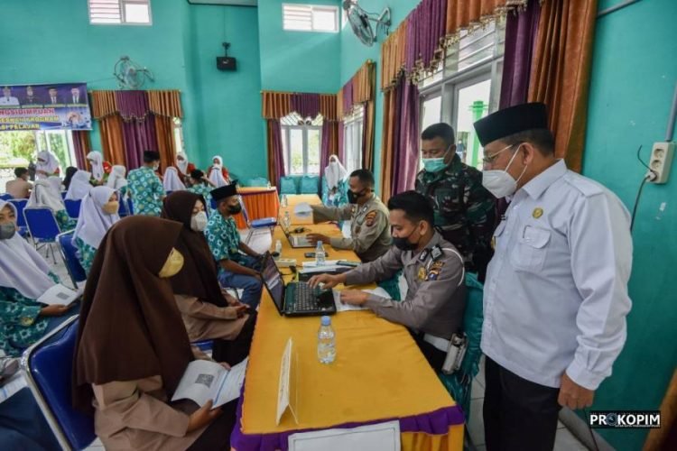 Padangsidimpuan, POL | Wakil Wali Kota Padangsidimpuan Arwin Siregar hadiri kegiatan vaksinasi massal untuk pelajar dosis ke-II di Aula MAN 2 Padangsidimpuan, Rabu (3/11/2021).