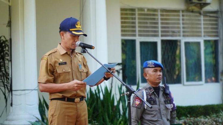 Stabat, POL | Pj. Bupati Langkat H.M. Faisal Hasrimy AP, M.AP yang diwakilkan oleh Plt Staf Ahli Bidang SDM Sosial dan Kemasyarakatan, H. Syahriazal, S.Sos, M.Si, memimpin apel gabungan Aparatur Sipil Negara (ASN) di halaman Kantor Bupati Langkat pada Senin (11/10). Apel ini dihadiri oleh para Asisten, Staf Ahli Bupati, pejabat eselon II, III, IV, serta ASN dan non-ASN di lingkungan Pemerintah Kabupaten Langkat.
