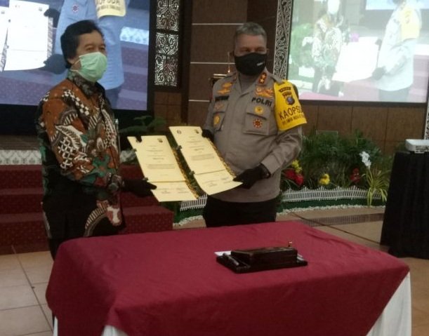 Medan, POL | Untuk menindaklanjuti kerja sama antara Bank Indonesia dan Polri, Kepala Kantor Perwakilan Bank Indonesia (BI) Provinsi Sumatera Utara (Sumut) Wiwiek Sisto Widayat bersama Kapolda Sumut Irjen Pol Martuani Sormin M.Si melanjutkan Nota Kesepahaman Pedoman Kerja Sama, Selasa (21/7/2020) di Gedung Tribrata, Mapoldasu.