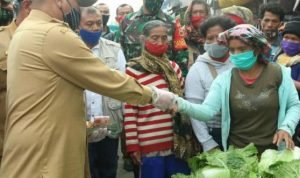 Siborongborong, POL | Bupati Taput Drs Nikson Nababan MSi bersama Forkopimda secara langsung meninjau geliat transaksi jual-beli di Pekan Siborongborong, Senin (15/06/2020). Tidak hanya meninjau, Bupati Nikson yang dikenal punya jiwa sosial tinggi, juga “memborong” hasil pertanian tersebut.