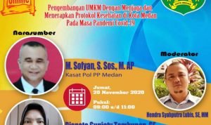 Untuk itulah, pada Jumat (20/11) Pemko Medan, dalam hal ini Dinas Kominfo Kota Medan bekerja sama dengan Komite Penanganan Covid-19 dan Pemulihan Ekonomi Nasional (KPC PEN) menggelar webinar bertajuk “Pengembangan UMKM Dengan Menjaga dan Menerapkan Protokol Kesehatan di Kota Medan