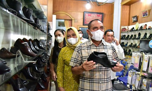“Kita mengimplementasikan perintah Mendagri, jadi UMKM kita khususnya yang di Sumut bisa terbantu,” kata Edy Rahmayadi usai meninjau tempat pembuatan sepatu Kotama di Jalan A.R Hakim Nomor 206 C, Medan, Sabtu (4/6/2022).