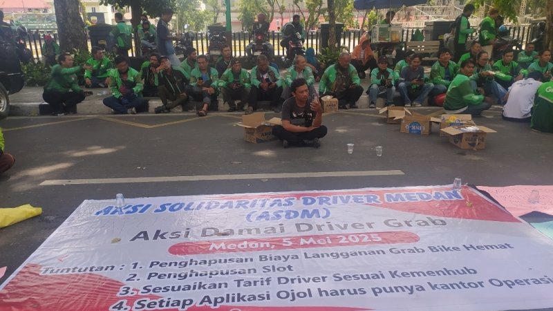 Medan, POL | Ratusan pengemudi ojek online (Ojol) di Kota Medan menggeruduk kantor DPRD Sumatera Utara (Sumut) untuk menyampaikan tuntutan kesejahteraan, Senin (5/5/2025).