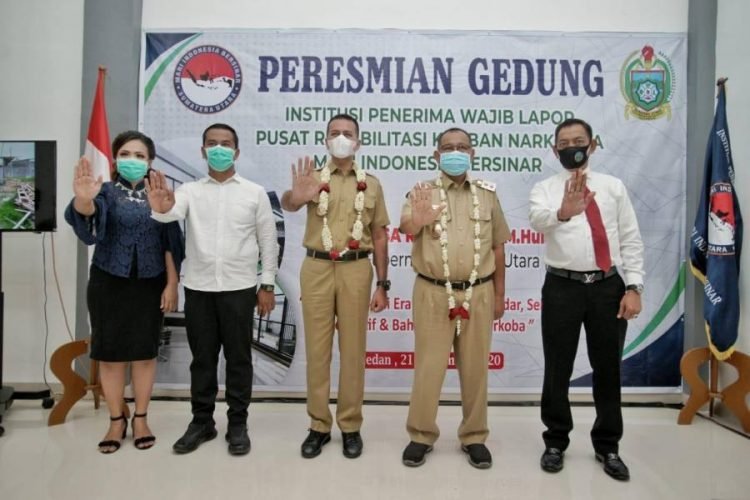 Medan, POL | Pelaksana Tugas (Plt) Wali Kota Medan Ir H Akhyar Nasution MSi bersama Wakil Gubernur Sumatera Utara (Wagubsu) Musa Rajekshah dan Pimpinan Institusi Penerima Wajib Lapor (IPWL) Mari Indonesia Bersinar Johanes Siregar meresmikan gedung IPWL Pusat Rehabilitasi Korban Narkotika Mari Indonesia Bersinar yang berada di Jalan Petunia Kelurahan Namo Gajah Kecamatan Medan Tuntungan, Senin (21/9/2020).