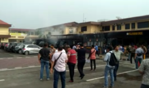 Saat terjadi ledakan, masyarakat yang akan mengurus surat keterangan catatan kepolisian (SKCK) dan petugas polisi berseragam yang baru saja usai apel langsung berhamburan keluar dari halaman parkir.