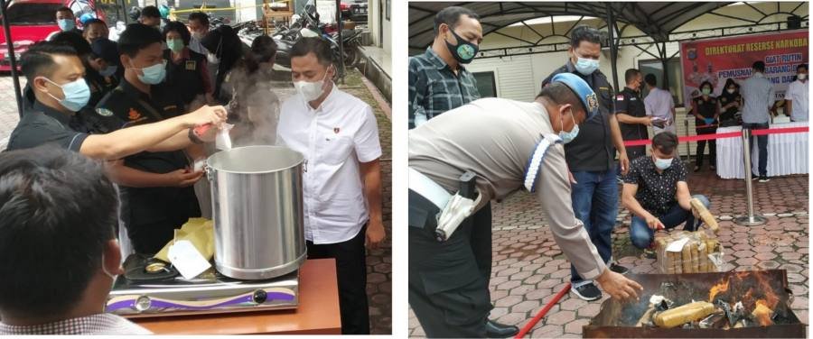 Adapun barang bukti narkotika yang dimusnahkan merupakan hasil pengungkapan periode Bulan Juli s/d Oktober 2021 jumlah kasus 19 kasus dengan tersangka 32 orang dengan perincian 31 orang laki-laki dan 1 orang perempuan.