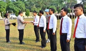 Sergai, POL | Kapolres Serdang Bedagai (Sergai)  AKBP H Juliarman Eka Putra Pasaribu SSos SIK MSi memberikan reward kepada 6(enam) personel Polres Sergai dari Satuan Reserse Narkoba Polres Sergai yang berhasil ungkap peredaran narkoba diwilayah hukum Polres Sergai, tepatnya di halaman Mapolres Sergai, Kecamatan Seirmpah, Sergai, Senin (18/3/2019) pagi.