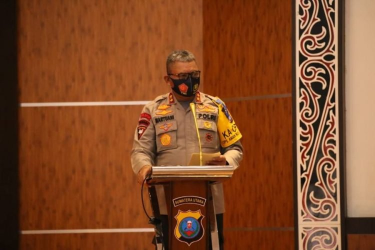 Medan, POL | Masalah virus Covid-19 yang melanda wilayah Sumatera Utara, terus menunjukkan angka peningkatan. Berkaitan hal tersebut, Kapolda Sumut Irjen Pol Martuani Sormin membuka supervisi Operasi Aman Nusa II yang berlangsung di Aula Tribrata Mapolda Sumut, Senin (3/08/2020).