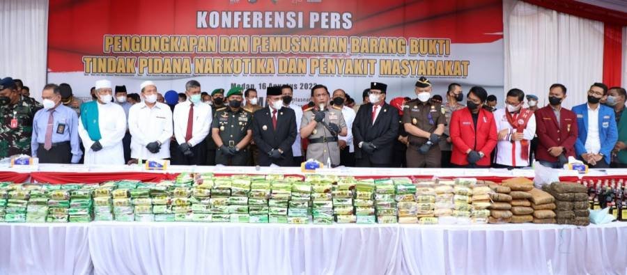 Hal tersebut disampaikan saat konferensi pers pengungkapan dan pemusnahan barang bukti Narkotika dan penyakit masyarakat di Mapolda Sumut, Selasa (16/08).