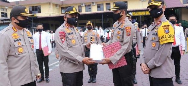 Medan, POL | Sebanyak 49 personel Polrestabes Medan dan jajaran menerima penghargaan dari Kapolda Sumut Irjen Pol Martuani Sormin. Apel sekaligus pemberian penghargaan berlangsung di Lapangan Mapolrestabes Medan, Rabu (22/7/2020).