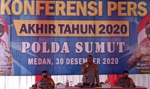 Medan, POL | Diawali dengan pembacaan doa, konfrensi pers akhir tahun 2020 yang rutin dilaksanakan tiap akhir tahun, kali ini konfrensi pers diadakan di mako Sat Brimob Polda Sumut, Jalan Wahid Hasyim Medan, Rabu (30/12).