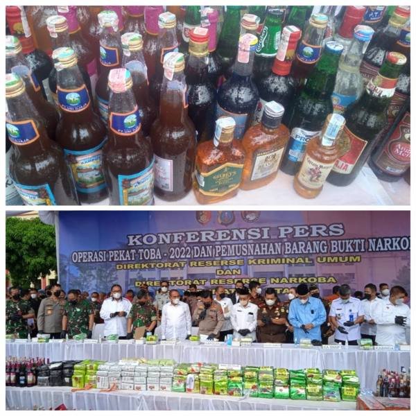 Medan, POL | Ditengah guyuran hujan Polda Sumatera Utara (Poldasu-red) lakukan pemusnahan ratusan kilogram narkoba dan minuman keras (miras) yang merupakan barang bukti hasil tangkapan dari berbagai daerah di Sumatera Utara, Selasa (19/4/2022).